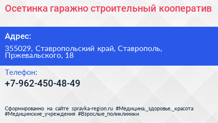 Осетинка, гаражно-строительный кооператив по адресу 355029, Ставропольский край, Ставрополь, Пржевальского, 18 в дальнейшем Организация, размещена в следующих категориях: