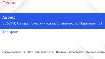 Пески по адресу 356243, Ставропольский край, Ставрополь, Парковая, 30 в дальнейшем Организация, размещена в следующих категориях: