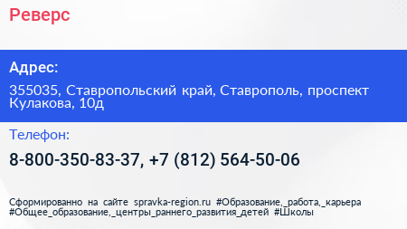 Реверс по адресу 355035, Ставропольский край, Ставрополь, проспект Кулакова, 10д в дальнейшем Организация, размещена в следующих категориях:
