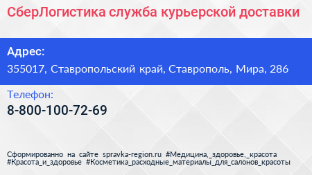 СберЛогистика, служба курьерской доставки по адресу 355017, Ставропольский край, Ставрополь, Мира, 286 в дальнейшем Организация, размещена в следующих категориях:
