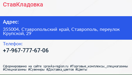 СтавКладовка по адресу 355004, Ставропольский край, Ставрополь, переулок Крупской, 29 в дальнейшем Организация, размещена в следующих категориях: