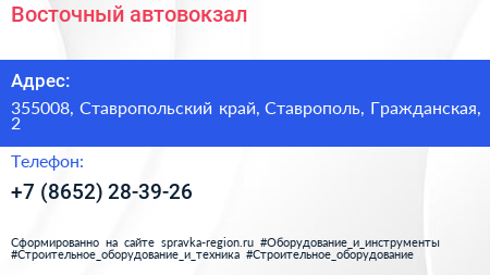 Восточный, автовокзал по адресу 355008, Ставропольский край, Ставрополь, Гражданская, 2 в дальнейшем Организация, размещена в следующих категориях: