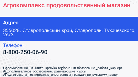 Агрокомплекс, продовольственный магазин по адресу 355028, Ставропольский край, Ставрополь, Тухачевского, 26/3 в дальнейшем Организация, размещена в следующих категориях:
