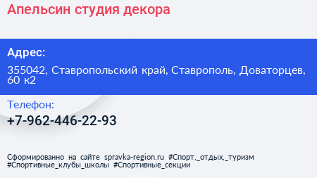 Апельсин, студия декора по адресу 355042, Ставропольский край, Ставрополь, Доваторцев, 60 к2 в дальнейшем Организация, размещена в следующих категориях: