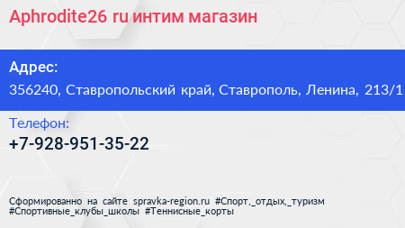 Aphrodite26.ru, интим-магазин по адресу 356240, Ставропольский край, Ставрополь, Ленина, 213/1 в дальнейшем Организация, размещена в следующих категориях: