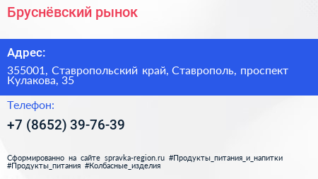 Бруснёвский, рынок по адресу 355001, Ставропольский край, Ставрополь, проспект Кулакова, 35 в дальнейшем Организация, размещена в следующих категориях: