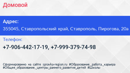 Домовой по адресу 355045, Ставропольский край, Ставрополь, Пирогова, 20а в дальнейшем Организация, размещена в следующих категориях: