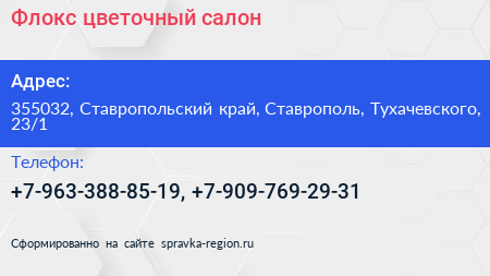 Флокс, цветочный салон по адресу 355032, Ставропольский край, Ставрополь, Тухачевского, 23/1 в дальнейшем Организация, размещена в следующих категориях: