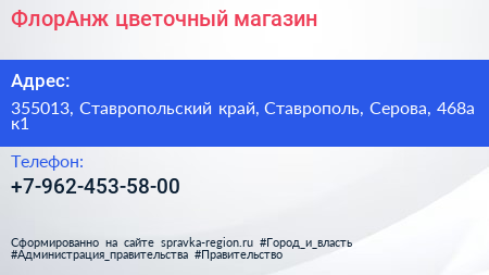 ФлорАнж, цветочный магазин по адресу 355013, Ставропольский край, Ставрополь, Серова, 468а к1 в дальнейшем Организация, размещена в следующих категориях: