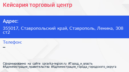 Кейсария, торговый центр по адресу 355017, Ставропольский край, Ставрополь, Ленина, 308 ст2 в дальнейшем Организация, размещена в следующих категориях:
