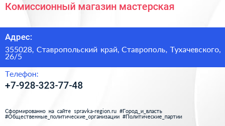 Комиссионный магазин-мастерская по адресу 355028, Ставропольский край, Ставрополь, Тухачевского, 26/5 в дальнейшем Организация, размещена в следующих категориях: