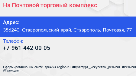 На Почтовой, торговый комплекс по адресу 356240, Ставропольский край, Ставрополь, Почтовая, 77 в дальнейшем Организация, размещена в следующих категориях: