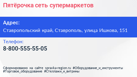 Пятёрочка, сеть супермаркетов по адресу Ставропольский край, Ставрополь, улица Ишкова, 151 в дальнейшем Организация, размещена в следующих категориях: