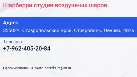 Шарберри, студия воздушных шаров по адресу 355029, Ставропольский край, Ставрополь, Ленина, 484в в дальнейшем Организация, размещена в следующих категориях: