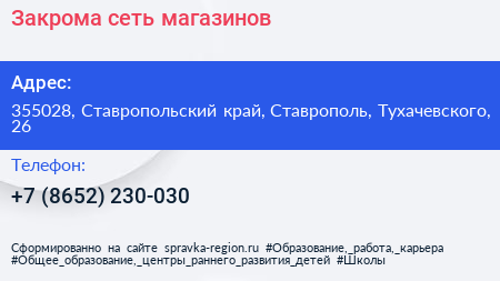Закрома, сеть магазинов по адресу 355028, Ставропольский край, Ставрополь, Тухачевского, 26 в дальнейшем Организация, размещена в следующих категориях: