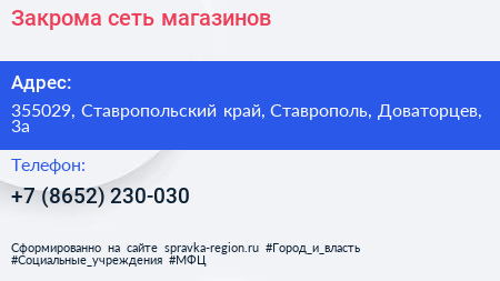 Закрома, сеть магазинов по адресу 355029, Ставропольский край, Ставрополь, Доваторцев, 3а в дальнейшем Организация, размещена в следующих категориях:
