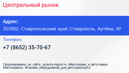 Центральный, рынок по адресу 355002, Ставропольский край, Ставрополь, Артёма, 49 в дальнейшем Организация, размещена в следующих категориях: