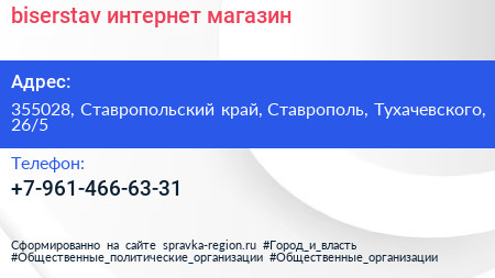 biserstav, интернет-магазин по адресу 355028, Ставропольский край, Ставрополь, Тухачевского, 26/5 в дальнейшем Организация, размещена в следующих категориях: