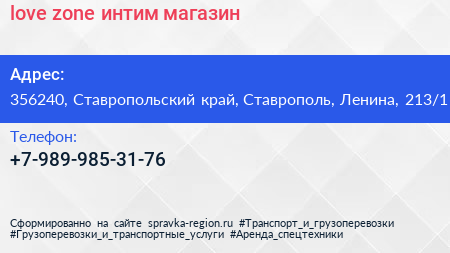 love zone, интим-магазин по адресу 356240, Ставропольский край, Ставрополь, Ленина, 213/1 в дальнейшем Организация, размещена в следующих категориях: