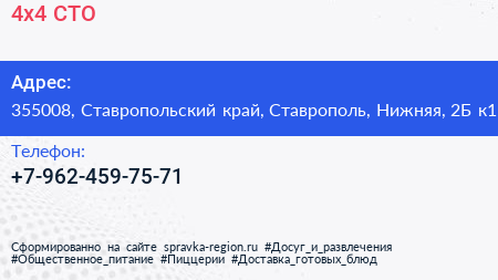 4х4, СТО по адресу 355008, Ставропольский край, Ставрополь, Нижняя, 2Б к1 в дальнейшем Организация, размещена в следующих категориях: