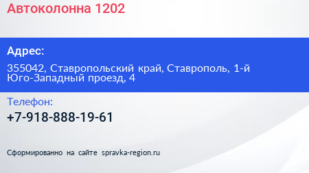Автоколонна №1202 по адресу 355042, Ставропольский край, Ставрополь, 1-й Юго-Западный проезд, 4 в дальнейшем Организация, размещена в следующих категориях: