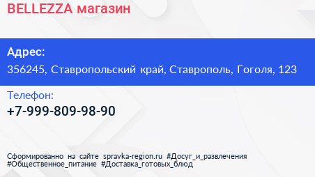 BELLEZZA, магазин по адресу 356245, Ставропольский край, Ставрополь, Гоголя, 123 в дальнейшем Организация, размещена в следующих категориях: