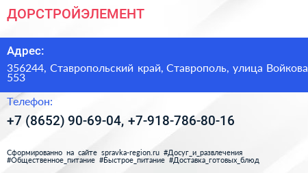 ДОРСТРОЙЭЛЕМЕНТ по адресу 356244, Ставропольский край, Ставрополь, улица Войкова, 553 в дальнейшем Организация, размещена в следующих категориях: