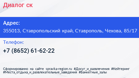 Диалог-ск по адресу 355013, Ставропольский край, Ставрополь, Чехова, 85/17 в дальнейшем Организация, размещена в следующих категориях: