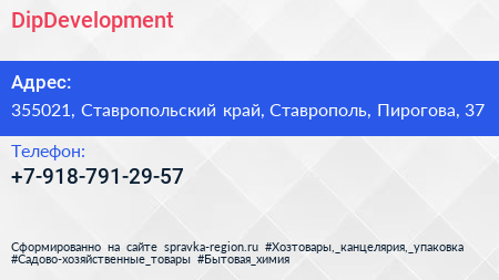 DipDevelopment по адресу 355021, Ставропольский край, Ставрополь, Пирогова, 37 в дальнейшем Организация, размещена в следующих категориях: