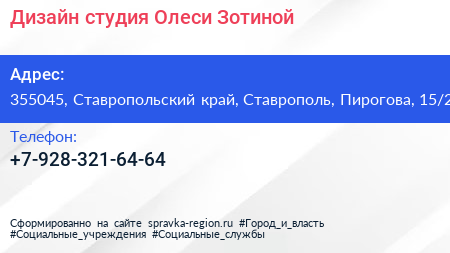 Дизайн-студия Олеси Зотиной по адресу 355045, Ставропольский край, Ставрополь, Пирогова, 15/2 в дальнейшем Организация, размещена в следующих категориях: