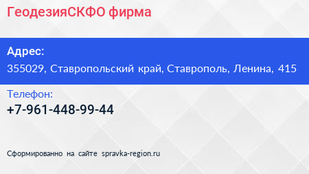 ГеодезияСКФО, фирма по адресу 355029, Ставропольский край, Ставрополь, Ленина, 415 в дальнейшем Организация, размещена в следующих категориях: