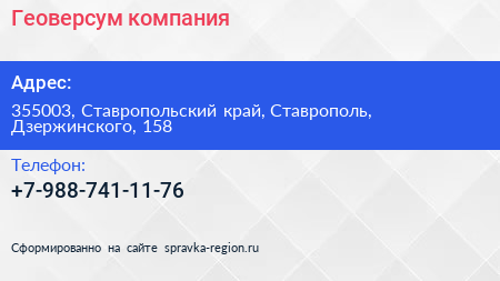 Геоверсум, компания по адресу 355003, Ставропольский край, Ставрополь, Дзержинского, 158 в дальнейшем Организация, размещена в следующих категориях: