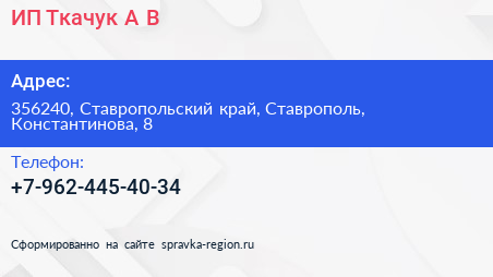 ИП Ткачук А.В. по адресу 356240, Ставропольский край, Ставрополь, Константинова, 8 в дальнейшем Организация, размещена в следующих категориях: