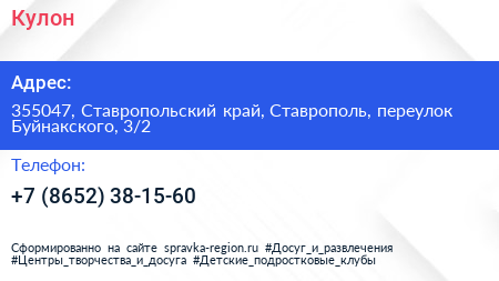 Кулон по адресу 355047, Ставропольский край, Ставрополь, переулок Буйнакского, 3/2 в дальнейшем Организация, размещена в следующих категориях: