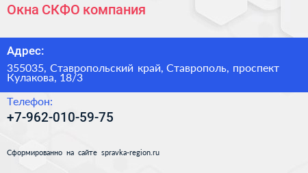 Окна СКФО, компания по адресу 355035, Ставропольский край, Ставрополь, проспект Кулакова, 18/3 в дальнейшем Организация, размещена в следующих категориях: