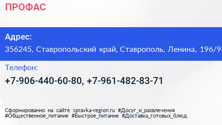 ПРОФАС по адресу 356245, Ставропольский край, Ставрополь, Ленина, 196/9 в дальнейшем Организация, размещена в следующих категориях: