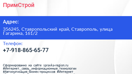 ПримСтрой по адресу 356245, Ставропольский край, Ставрополь, улица Гагарина, 161/2 в дальнейшем Организация, размещена в следующих категориях: