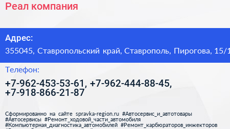 Реал, компания по адресу 355045, Ставропольский край, Ставрополь, Пирогова, 15/1 в дальнейшем Организация, размещена в следующих категориях: