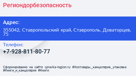 Региондорбезопасность по адресу 355042, Ставропольский край, Ставрополь, Доваторцев, 75 в дальнейшем Организация, размещена в следующих категориях:
