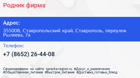 Родник, фирма по адресу 355008, Ставропольский край, Ставрополь, переулок Рылеева, 7а в дальнейшем Организация, размещена в следующих категориях: