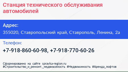 Станция технического обслуживания автомобилей по адресу 355020, Ставропольский край, Ставрополь, Ленина, 2а в дальнейшем Организация, размещена в следующих категориях: