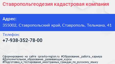 Ставропольгеодезия, кадастровая компания по адресу 355002, Ставропольский край, Ставрополь, Тельмана, 41 в дальнейшем Организация, размещена в следующих категориях: