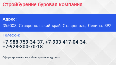 Стройбурение, буровая компания по адресу 355003, Ставропольский край, Ставрополь, Ленина, 392 в дальнейшем Организация, размещена в следующих категориях: