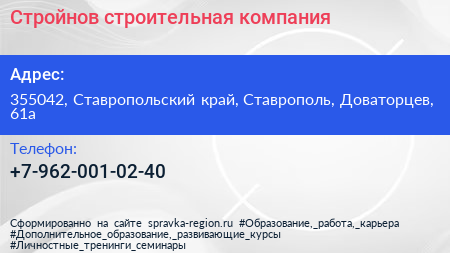 Стройнов, строительная компания по адресу 355042, Ставропольский край, Ставрополь, Доваторцев, 61а в дальнейшем Организация, размещена в следующих категориях: