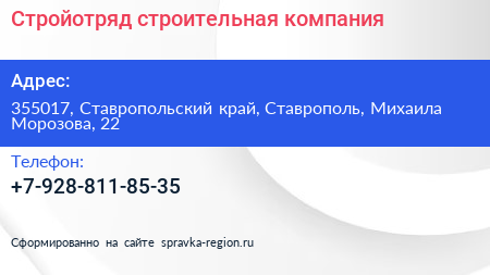 Стройотряд, строительная компания по адресу 355017, Ставропольский край, Ставрополь, Михаила Морозова, 22 в дальнейшем Организация, размещена в следующих категориях: