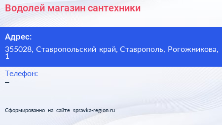 Водолей, магазин сантехники по адресу 355028, Ставропольский край, Ставрополь, Рогожникова, 1 в дальнейшем Организация, размещена в следующих категориях: