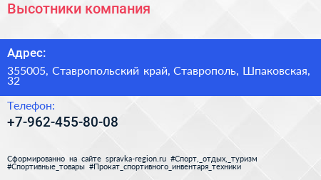 Высотники, компания по адресу 355005, Ставропольский край, Ставрополь, Шпаковская, 32 в дальнейшем Организация, размещена в следующих категориях: