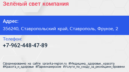Зелёный свет, компания по адресу 356240, Ставропольский край, Ставрополь, Фрунзе, 2 в дальнейшем Организация, размещена в следующих категориях: