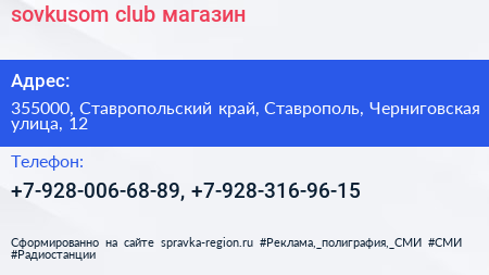 sovkusom.club, магазин по адресу 355000, Ставропольский край, Ставрополь, Черниговская улица, 12 в дальнейшем Организация, размещена в следующих категориях: