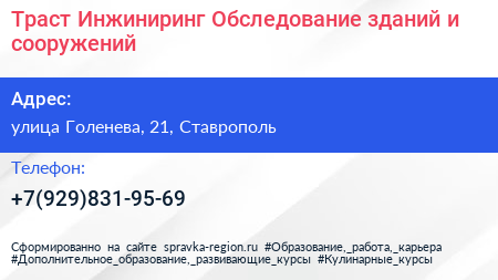 Траст Инжиниринг / Обследование зданий и сооружений по адресу улица Голенева, 21, Ставрополь в дальнейшем Организация, размещена в следующих категориях: